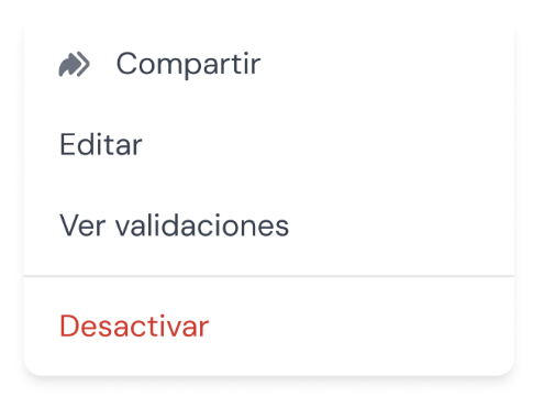 To manage a magic link, you must select the Magic Link Options button. This is displayed with 3 dots " ••• " in the corner of each row.